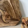 Patera do serwowania, deska do krojenia, wykonana z dwóch kawałków litego drewna orzecha o pięknym ubarwieniu i nieregularnym kształcie.