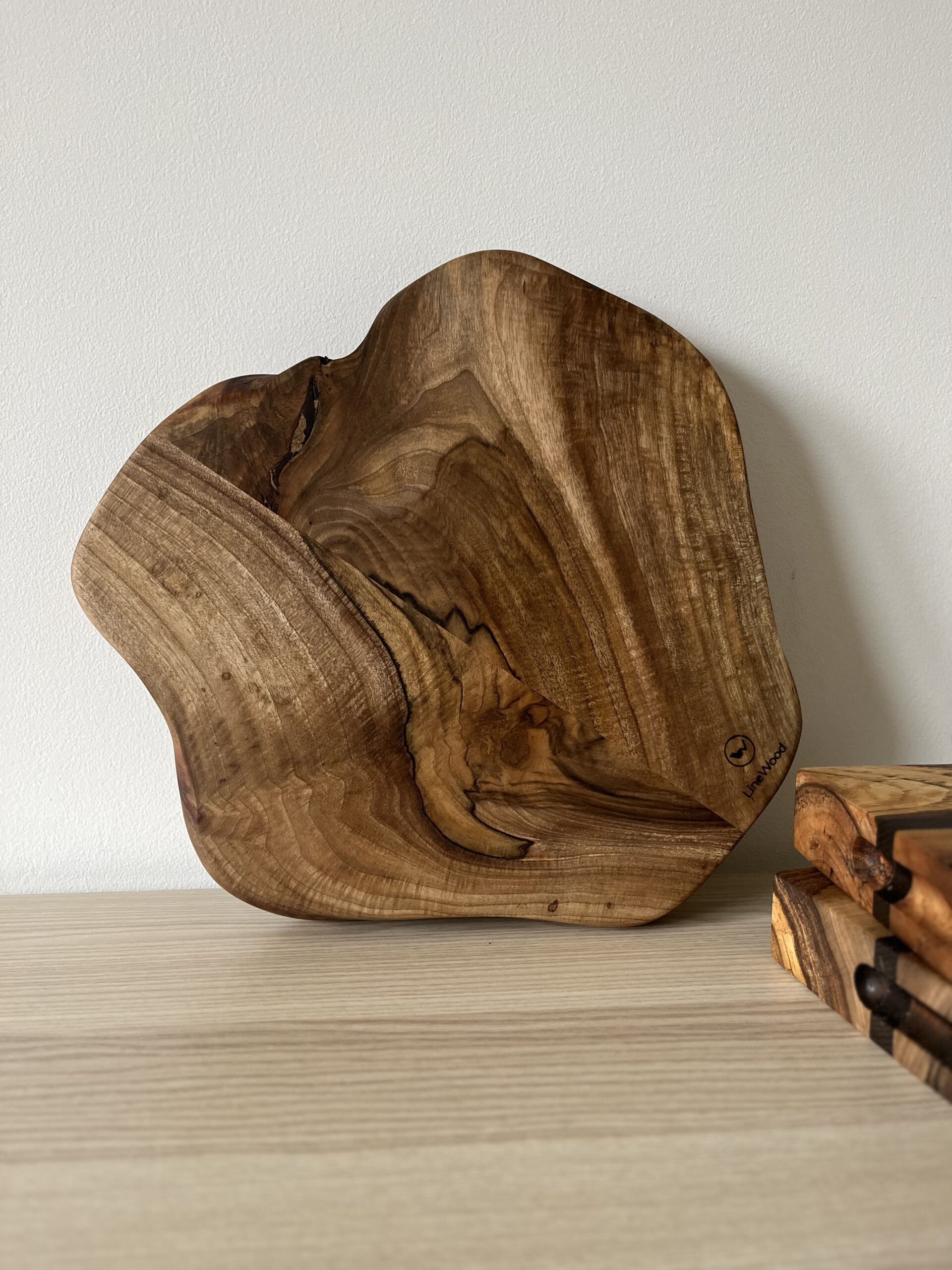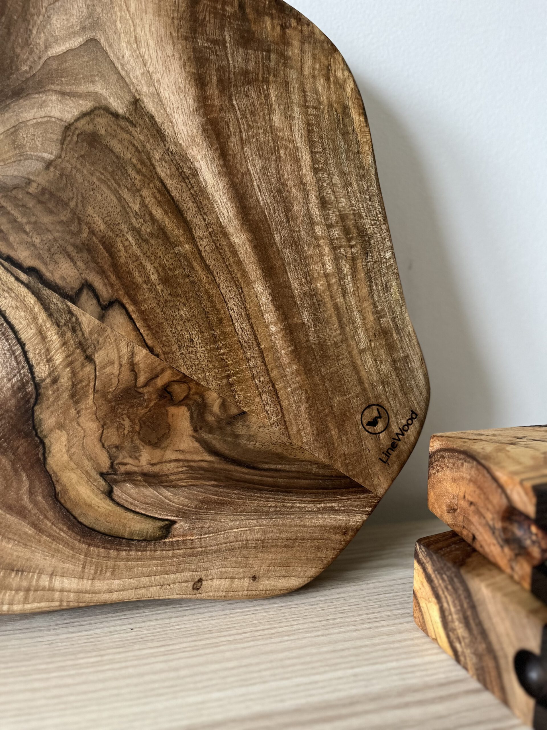 Deska, patera o nieregularnym kształcie, drewno orzechowe