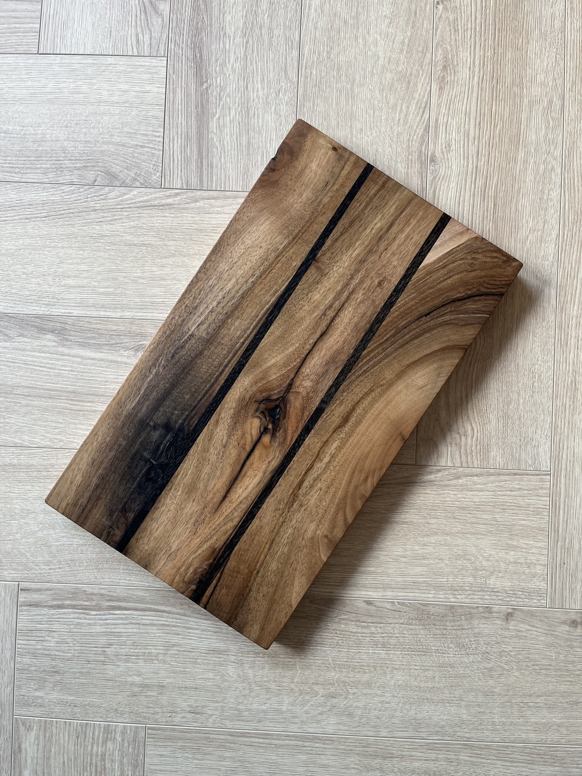 Duża deska do krojenia i serwowania z drewna orzecha i czarnego dębu