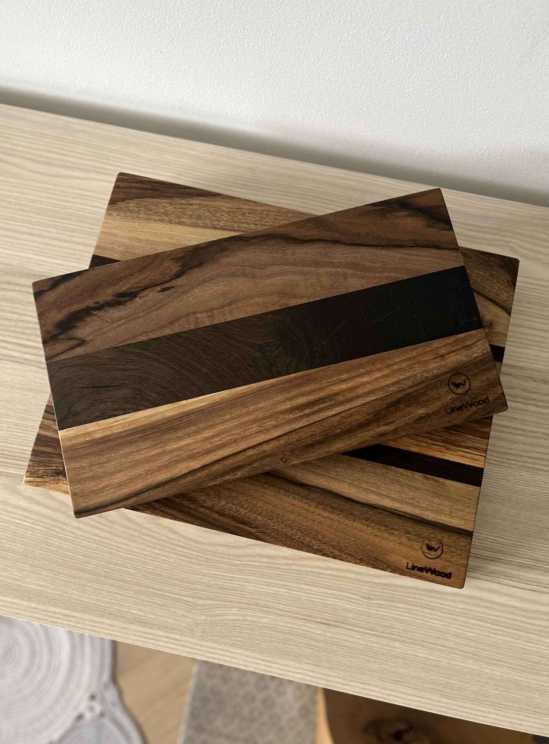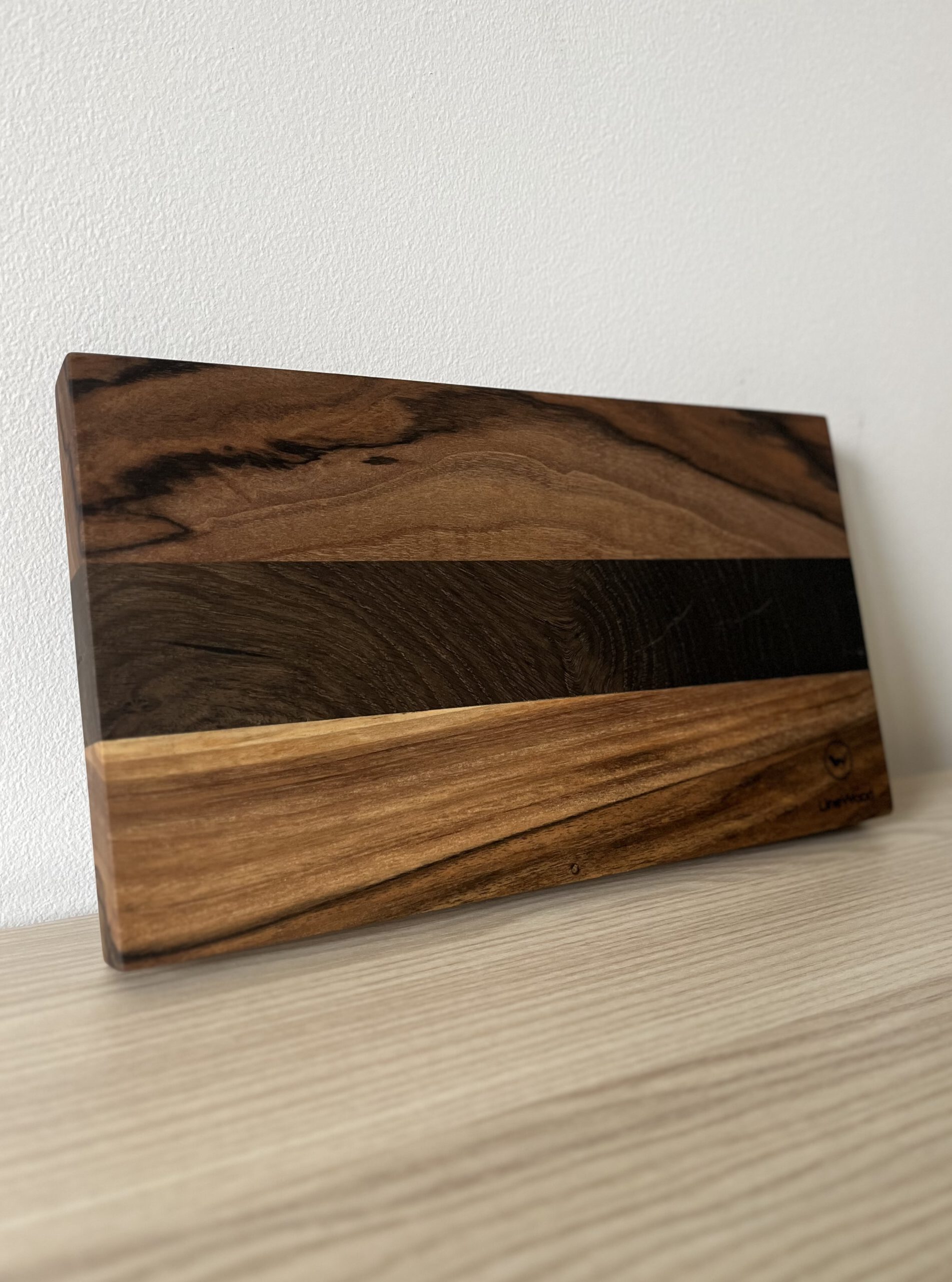 Nieduża deska do krojenia i serwowania z drewna orzecha i czarnego dębu