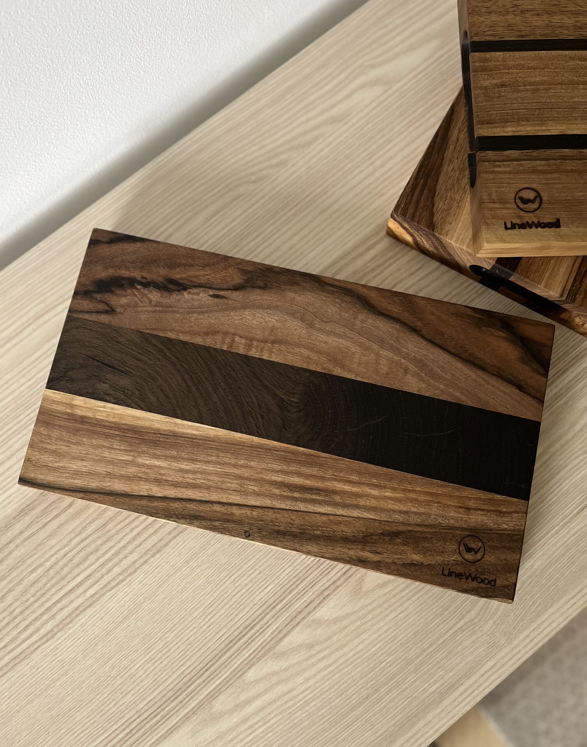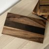 Mała deska do krojenia i serwowania z litego drewna orzecha, środkowa wstawka z autentycznego czarnego dębu.